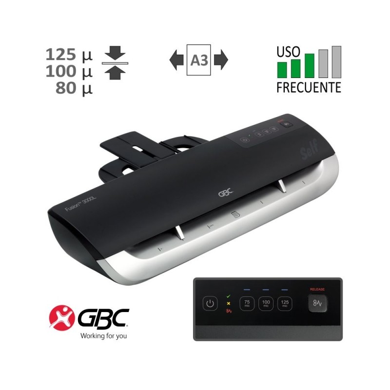 Perfecto a la primera, en la mitad de tiempo. Ideal para el usuario frecuente doméstico o de oficina, la plastificadora Fusion 3000L formato A3 garantiza grandes resultados de forma rápida. Elegante y compacta, está lista para su uso en 1 minuto y plastifica un documento individual hasta tamaño A3 en solo 30 segundos, empleando Fundas plastificar de 2 x 75/80 a 2 x 125 micras. Una guía ajustable para Fundas plastificar y una bandeja de salida mantienen los documentos alineados de forma precisa y perfectamente planos.