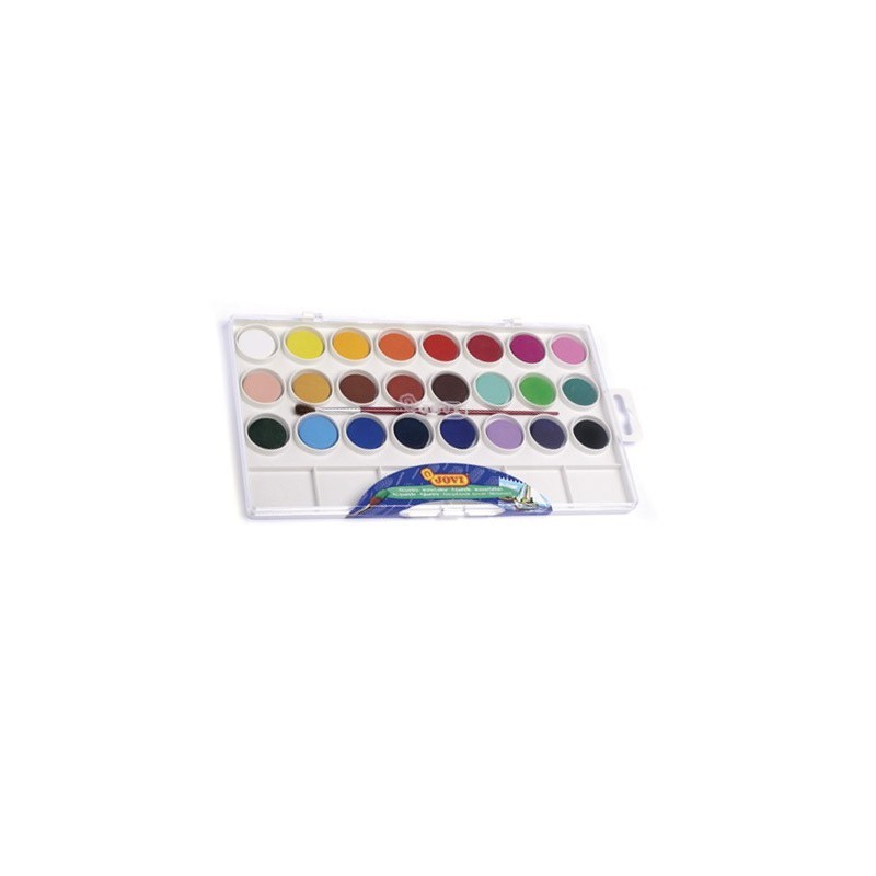 Estuche de acuarela en pastillas de 22mm. de diámetro. Contienen pincel y cubetas para poder mezclar los Colores. Estuche de 24 Colores surtidos + pincel.