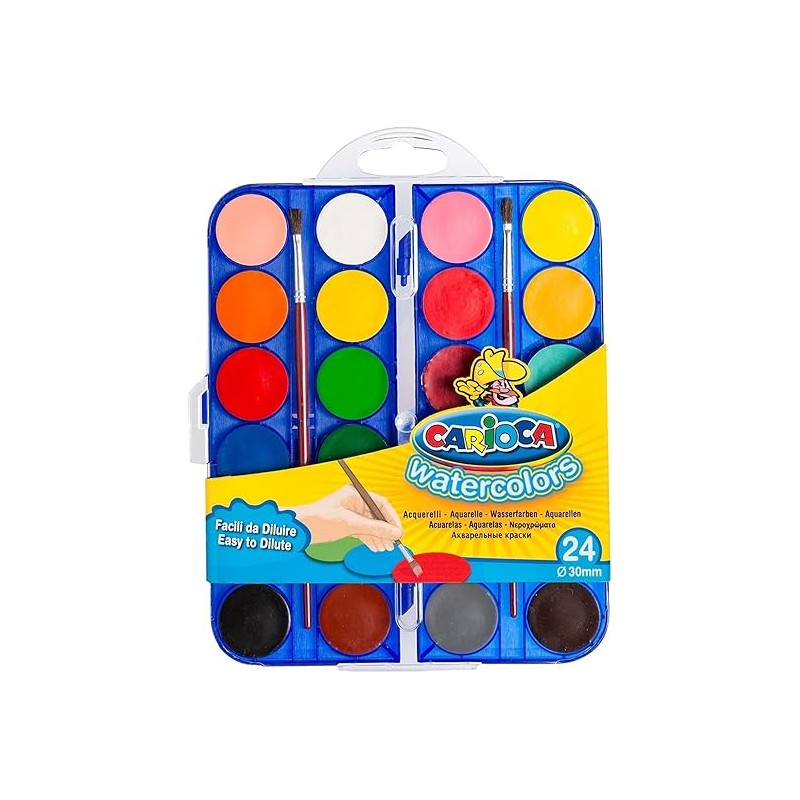 Colores en pastilla brillantes, fácilmente mezclables entre ellos. Ø 30 mm