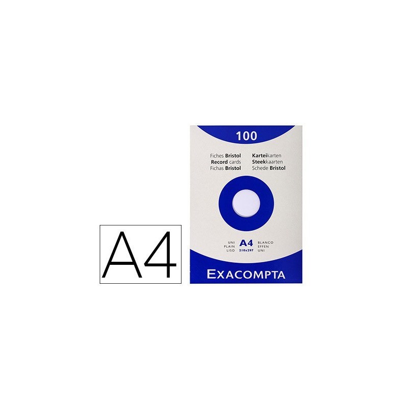Fitxes llises blanques. 100 fulles. Fabricades en cartolina de 205g/m² certificada PEFC. Indicada per retallar, escriure o imprimir en làser i/o ink-jet. A4.