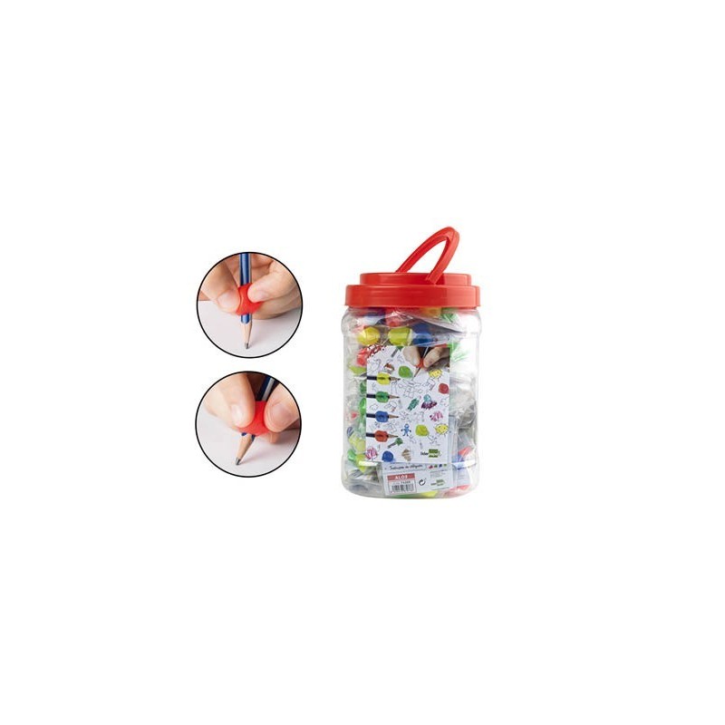 Adaptador de plàstic modelat a la posició dels dits. Ideal per ensenyar a l'escolar a agafar el llapis correctament i alhora facilitar l'escriptura en els seus inicis. Pot adaptar-se tant a esquerrans com a dretans. Recomanat pels educadors. Colors assortits.