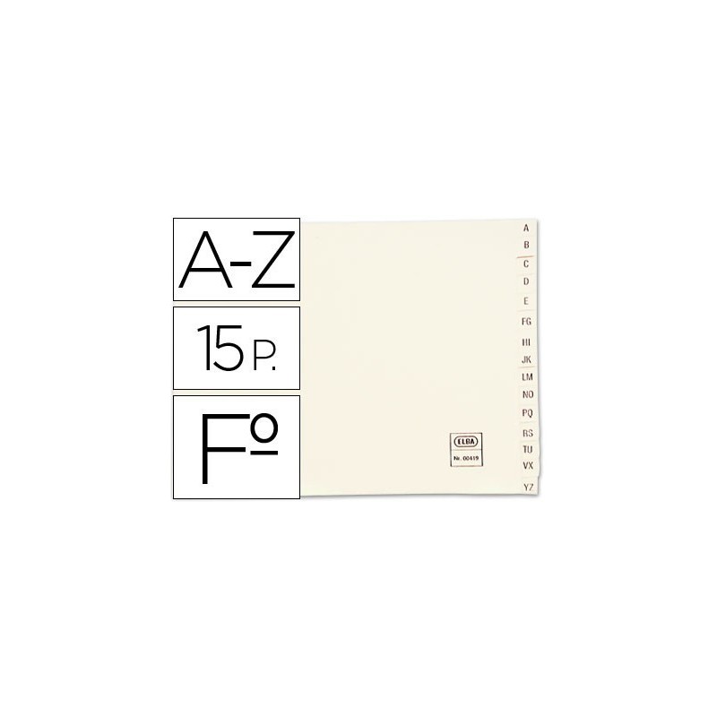 Joc d'índex alfabètic foli, fabricat en cartolina de 180 g/m². Indicat per a arxivadors de palanca i carpetes de 2 anelles. 2 forats. Mesures: 180x240mm.