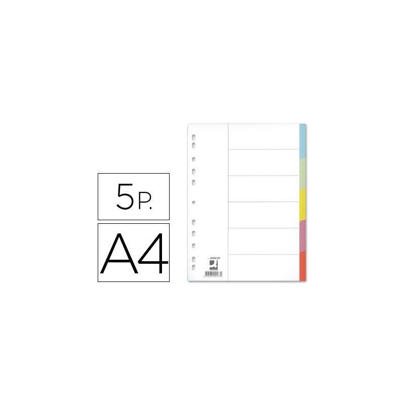 Joc de separadors fabricats en cartró de 175 g/m² de colors pastís. Per arxivar en diferents mecanismes d'anelles. Inclou caràtula amb índex.
