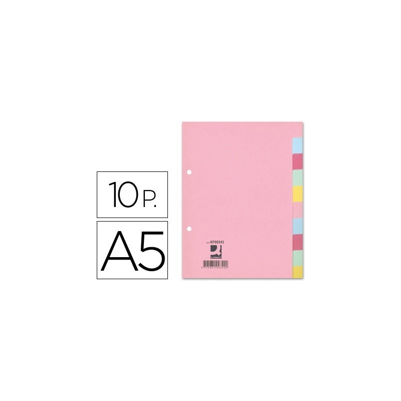 Joc de separadors fabricats en cartró de 175 g/m² de colors pastís. Per arxivar en diferents mecanismes d'anelles. Inclou caràtula amb índex.